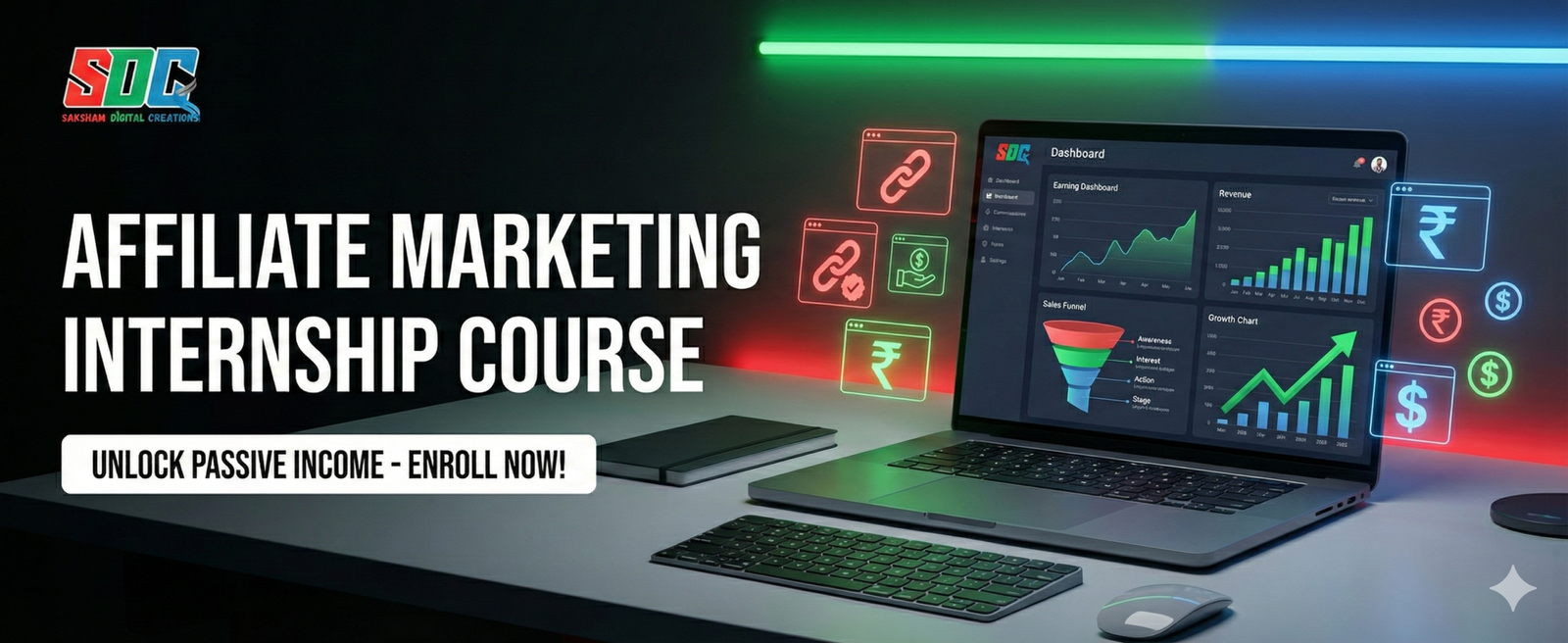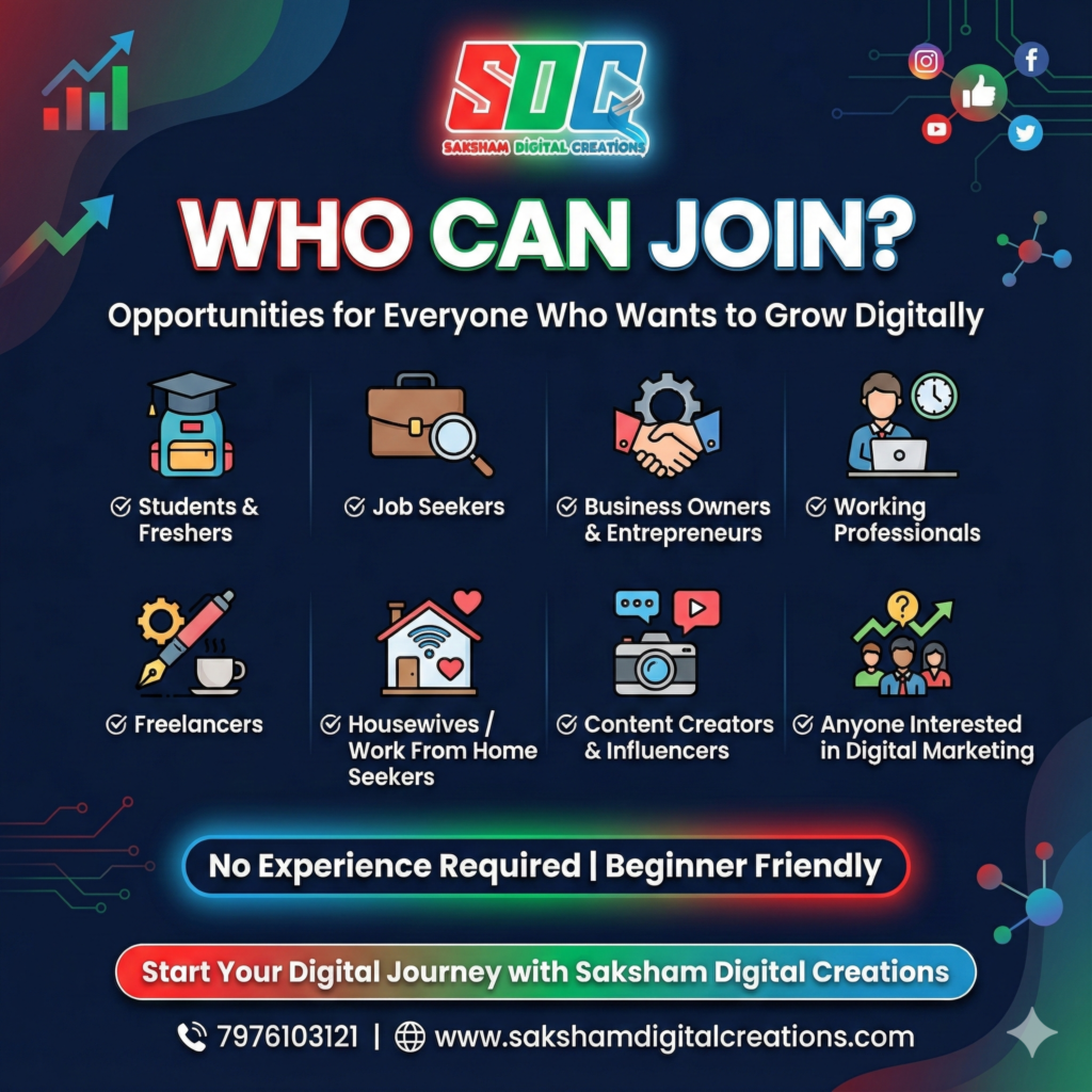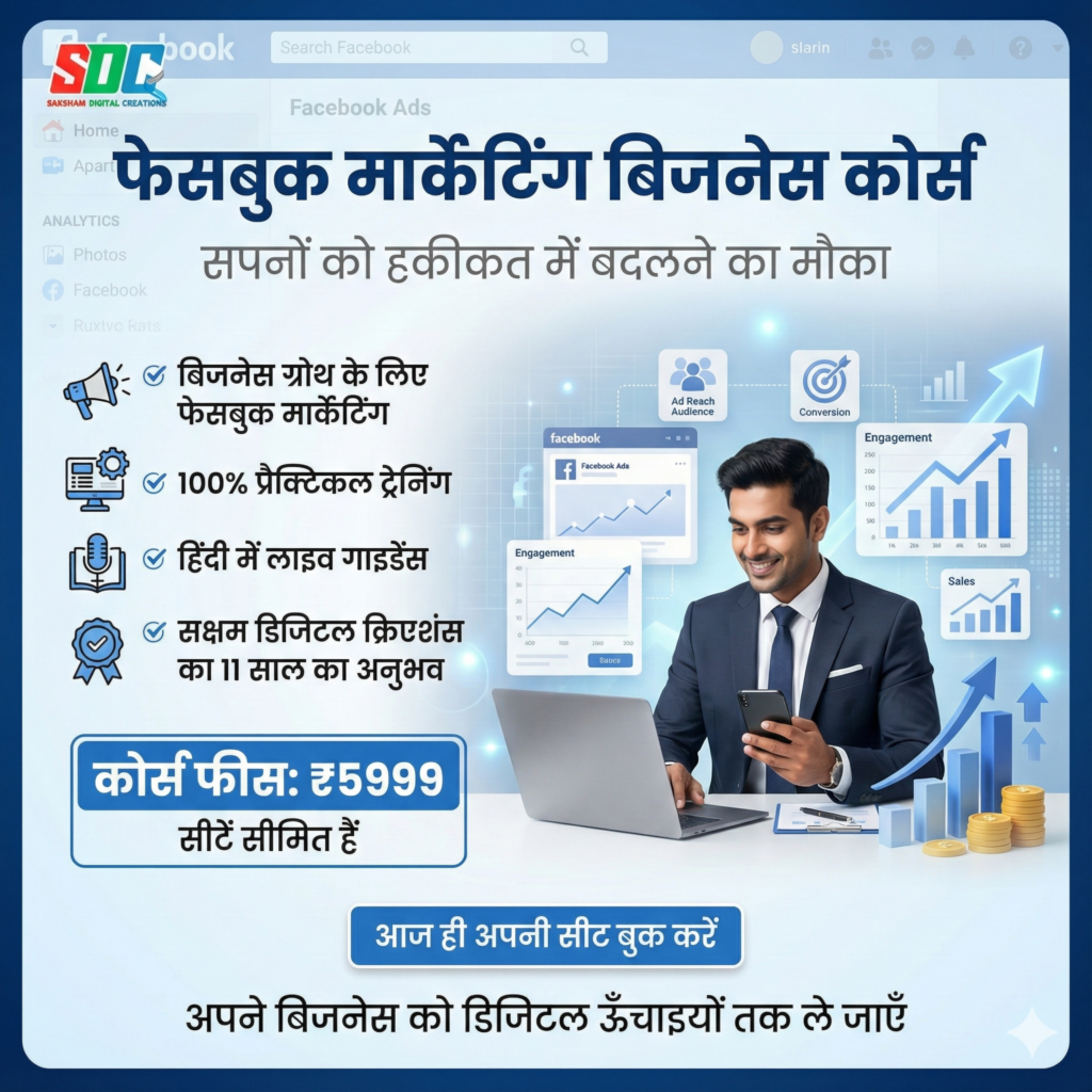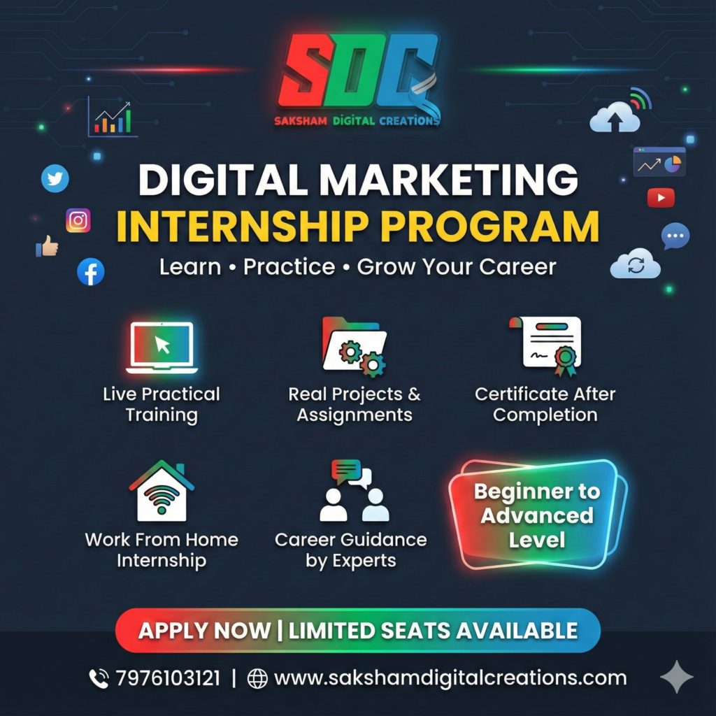 Learn Digital Marketing with practical courses, internship & certification at Saksham Digital Creations.