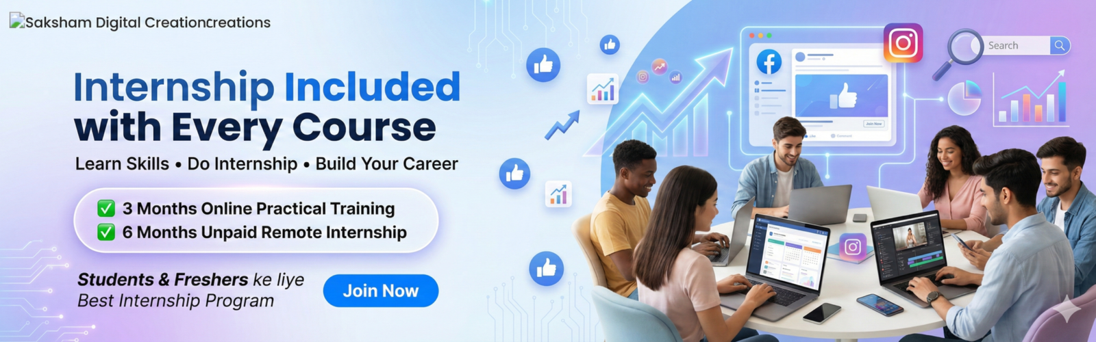 Internship is automatically included with every course at Saksham Digital Creations: